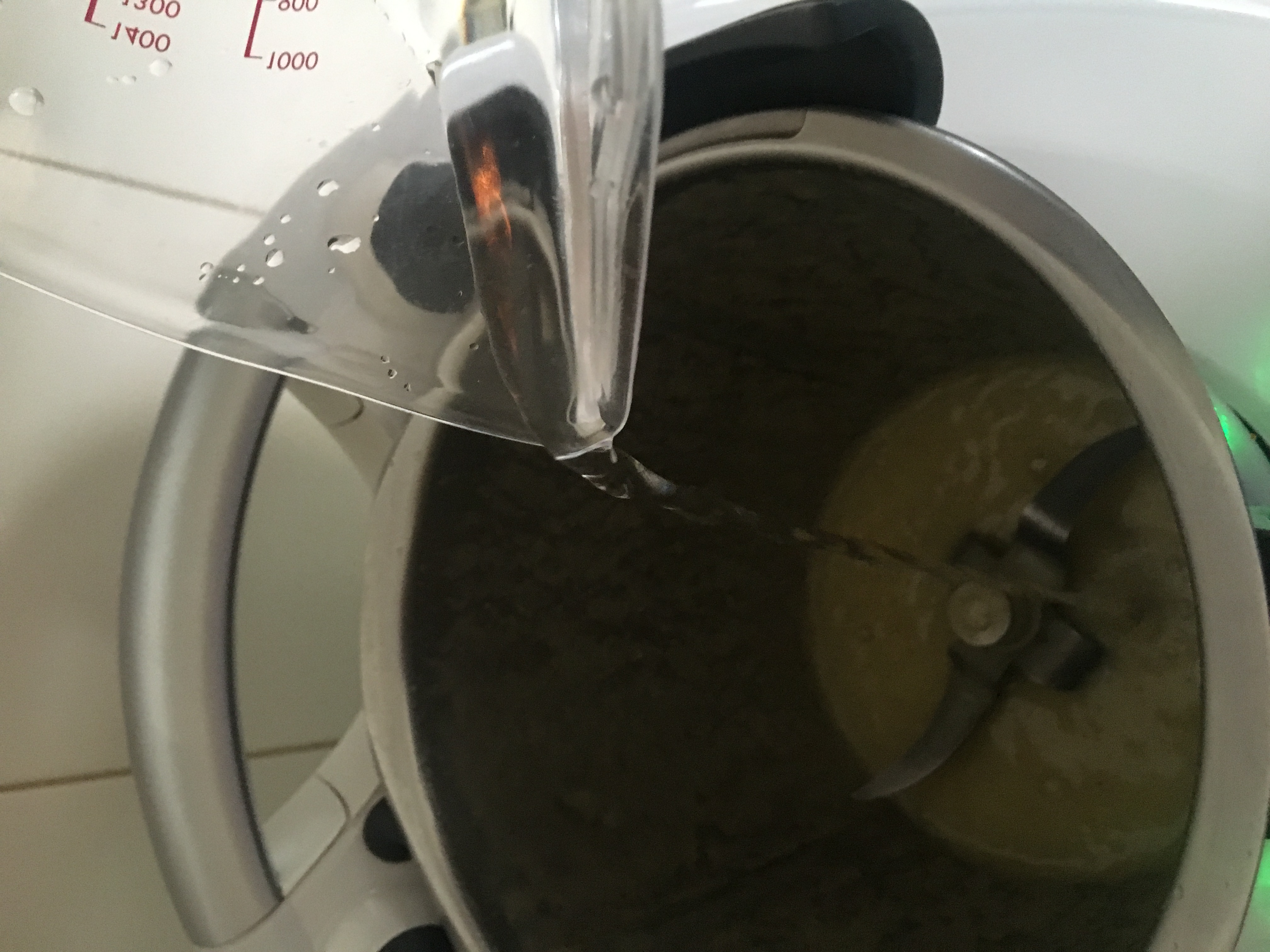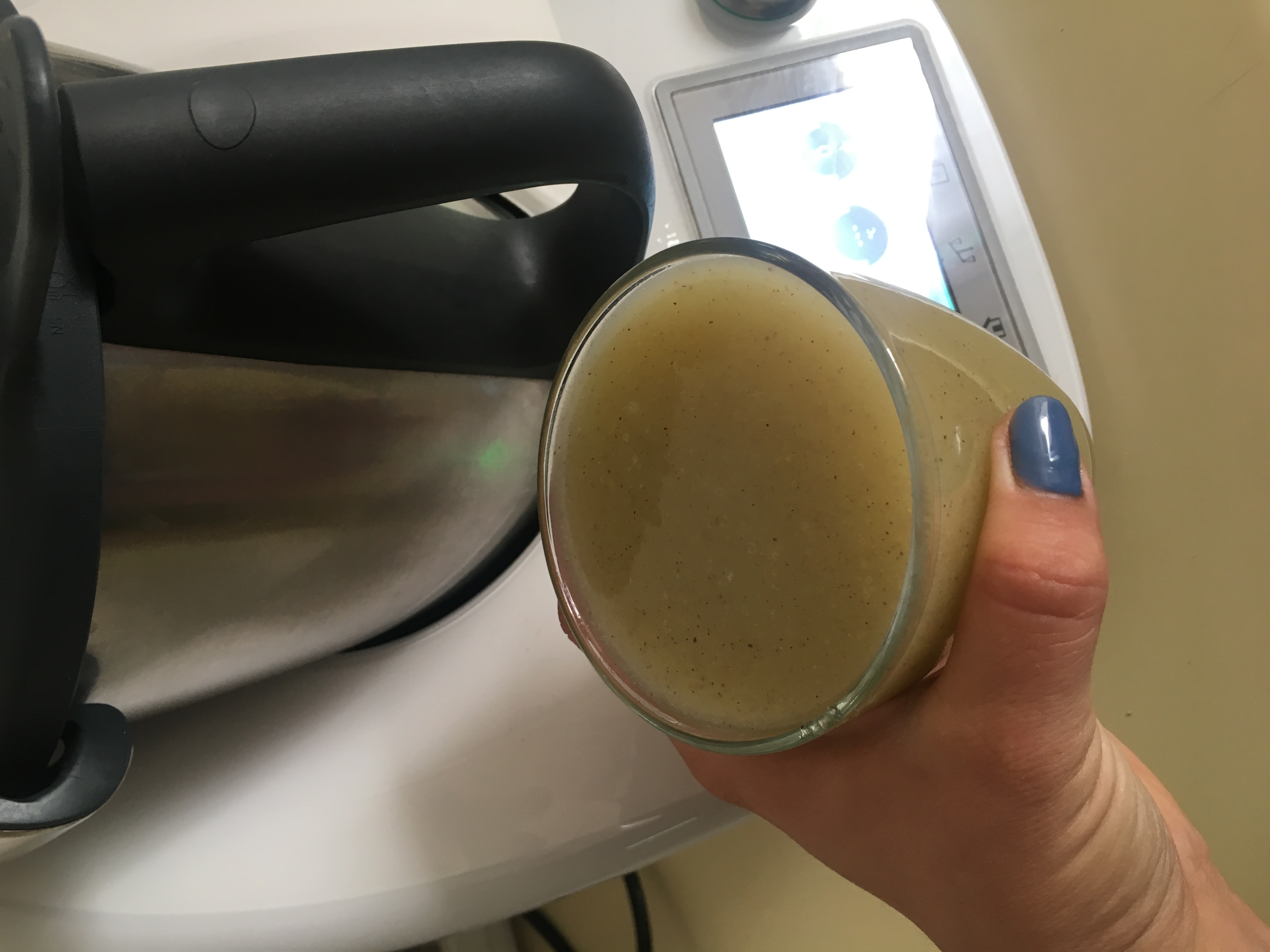 -Nos va a quedar un puré de fruta asique añadiremos agua a nuestro gusto para obtener la textura que deseemos en este caso he añadido unos 80g (dependerá un poco también del tipo de fruta que usemos, y del agua que tenga la fruta) y mezclamos 4 seg / vel 3 y ya está listo para tomar.