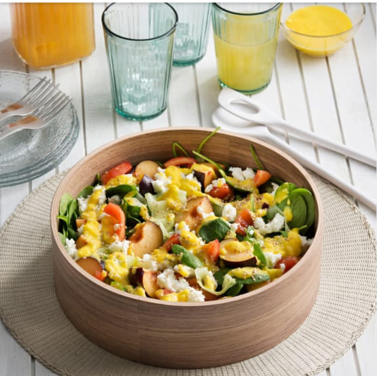ENSALADA DE ESPINACAS Y CIRUELAS CON VINAGRETA DE MANGO