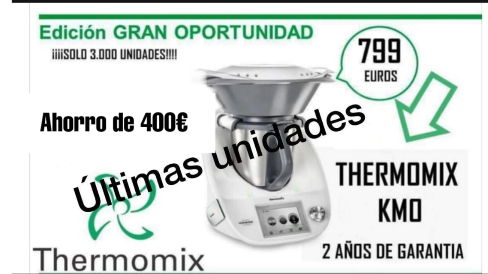 Vuelven las Tm 5 Km 0, sólo dos días unidades limitadas se el primero en reservala por sólo 799 euros con cookey y dos años de garantía. Paga al contado, con tarjeta, transferencia o en cómodos plazos financiando el importe. ¿ A QUÉ ESPERAS? Resérvala y disfruta cuanto antes de tu thermomix Tm 5 con cookey. Contáctame...